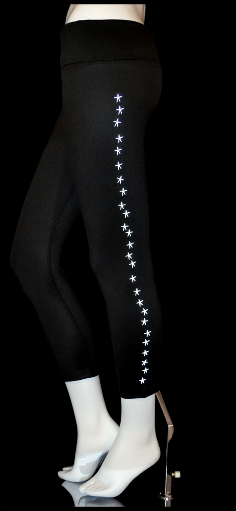 Hand/custom made GIANT STAR leggings that you will ONLY find here! Amazing comfort and quality. Wear for running, walking or fashion to BE SEEN or to simply STAND OUT in the crowd! Includes key pocket in waist band on left front side.